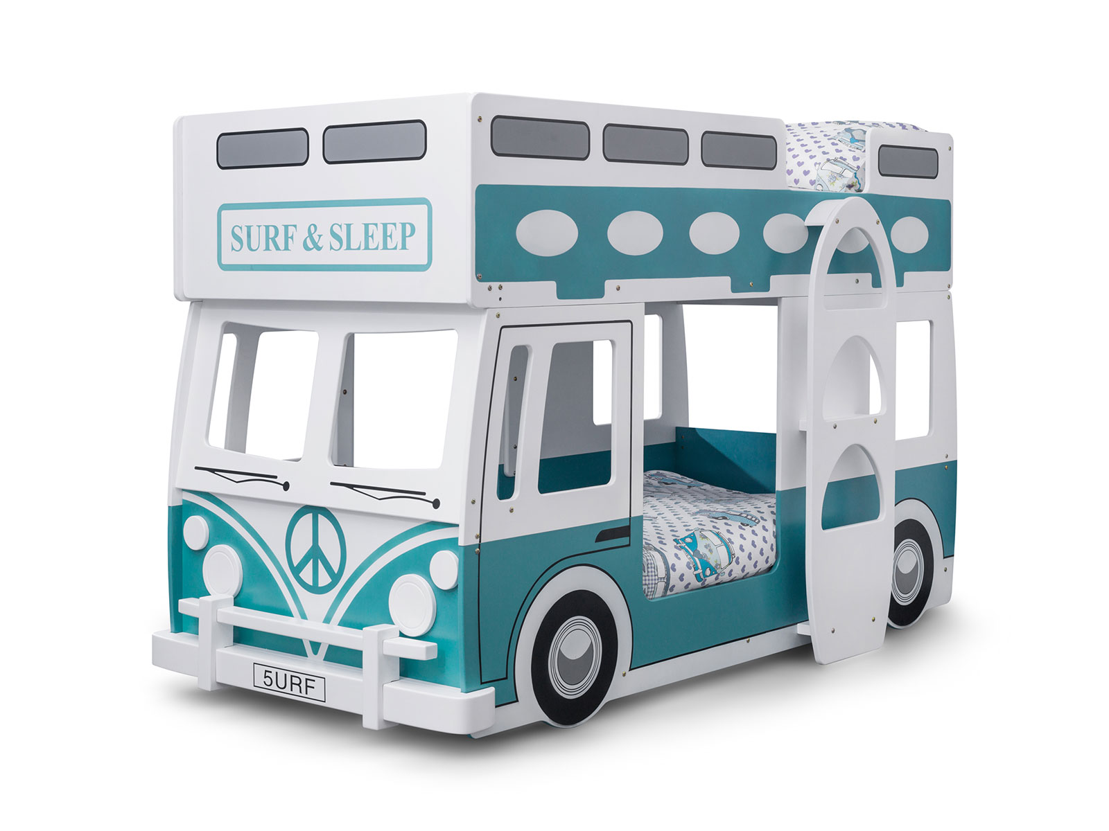The Campervan Bunk Bed is the perfect fun design for your child's bedroom! This beautifully crafted, sturdy bed will make your child feel secure at bedtimes, as well as providing a fun space for them to use during the day. Featuring a surfboard style ladder, steering wheel and very accurate detailing to give a realisitic look.