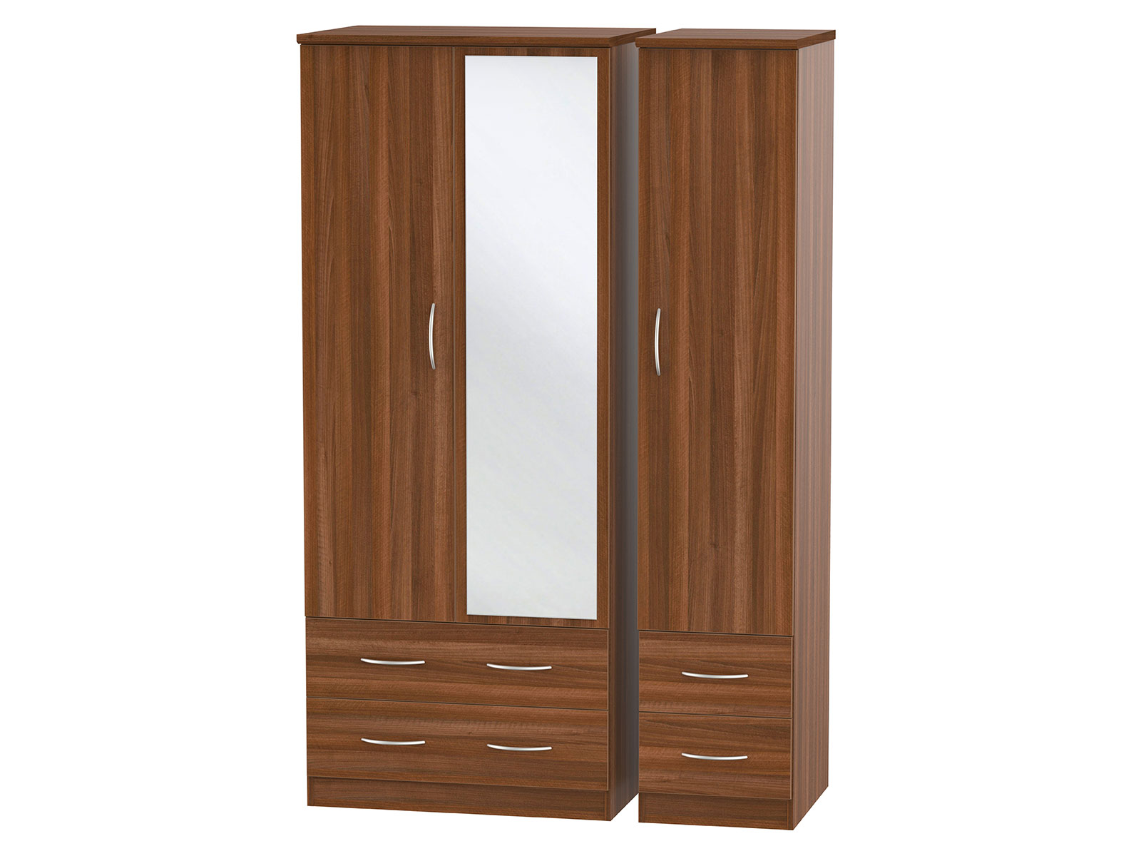 This full height triple 3 door wardrobeis perfect for any bedroom when a normal wardrobe is just not large enough. Also features 2 narrow and 2 wide storage drawers for added practicality as well as a single mirrored door.